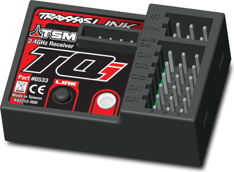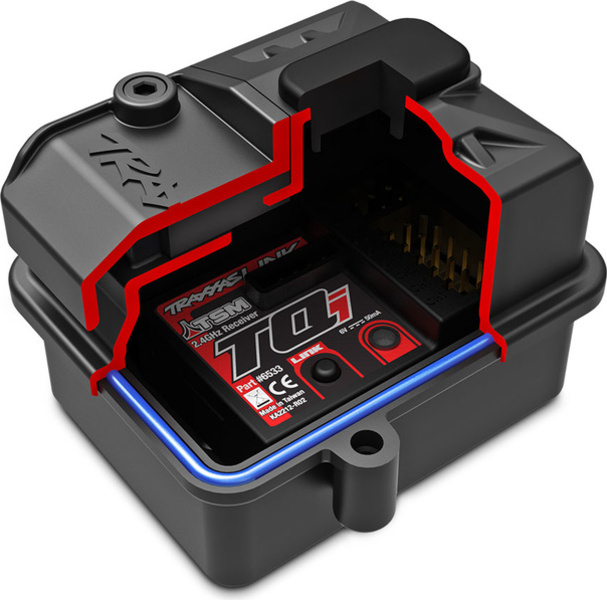 RC prijemnik Traxxas TQi 5 kan. TSM s telemetrijom za odašiljače Traxxas TQi. Jednostavna upotreba, uparivanje putem gumba. Indikacija stanja LED diodom. U prijemniku su integrirani 3-osni MEMS senzori za učenje položaja prijemnika.