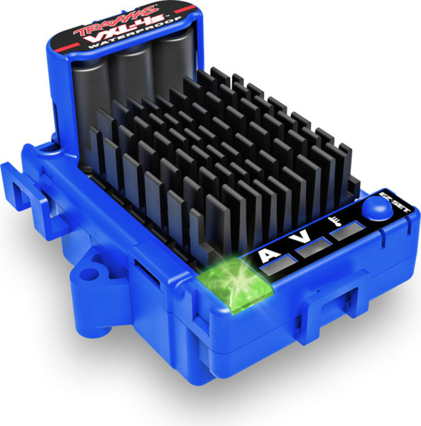 Potpuno novi, izmjenični regulator Traxxas VXL-4S namijenjen je napajanju jednim akumulatorom do 2-4S LiPo. Jednostavno podešavanje jednim gumbom. Indikacija stanja LED diodom. Odvod topline pomoću masivnog hladnjaka, koji se može dopuniti opcionalnim ventilatorom (nije uključeno u pakiranje). Vodootporna* konstrukcija.
