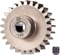 Traxxas zupčanik za osovinu od 5 mm s 25 zuba i modul zupčanika od 1 mm za RC model automobila. Izrađen od sinteriranog čelika. U pakiranju je uključen vijak za podešavanje.