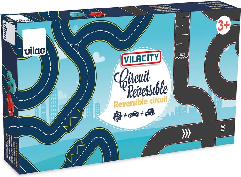 Dvostrana kartonska staza nudi djeci dvije različite igraće površine - trkaću stazu i klasičnu cestu. Ova varijabilnost proširuje mogućnosti igre i potiče maštu i kreativno razmišljanje.