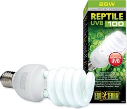 Žarulja Exo Terra Reptile UVB100 emitira UVB zračenje na optimalnoj razini, slično sjenovitim okruženjima prašuma i drugim tropskim mjestima.